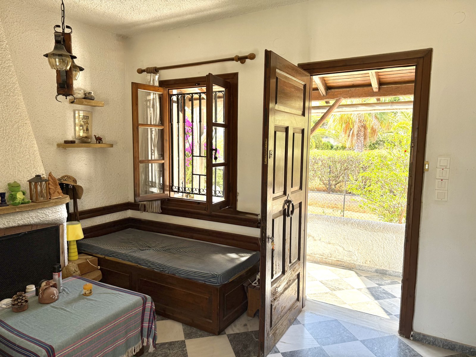 Outdoors, the property is equally impressive: gardens with palm trees, shaded terraces, and even a functioning well add to the home’s authentic character. Private parking ensures year-round ease of access, while the overall sense of space and seclusion makes this property truly unique.